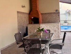 Ambientes internos:• Sala de estar• Sala de jantar• Sala de TV com estante planejada e ar-condicionado• Sala anexa à churrasqueira (pode ser usada como salão de festas ou sala de ginástica)• Cozinha grande com armários planejados• Lavanderia espaçosa com armários• 3 dormitórios com armários embutidos e ar-condicionado (sendo 1 suíte)• 2 armários embutidos no corredor.