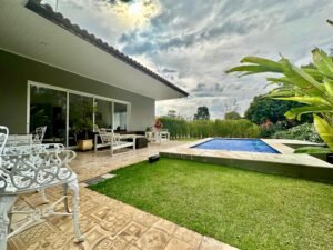 Vende-se casa muito boa no condomínio de na cidade de Tietê/SP com área do terreno de 921 m² e área construída de 210. 50 m² Sendo com garagem coberta para 2 carros sala cozinha lavanderia 1 quarto e 1 banheiro de empregada com 2 suítes e 1 lavabo aquecimento solar para piscina com energia foto voltaica CRECSP 115605.